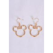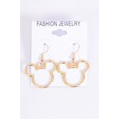 Earrings Metal Mouse Ear Gold / 12 pair = Dozen Fish Hook , Face Size - 1" Wide , Earring Card & OPP Bag & UPC Code