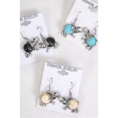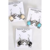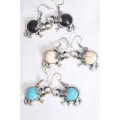 Earrings Metal Antique Elephant Semiprecious Stone / 12 pair = Dozen