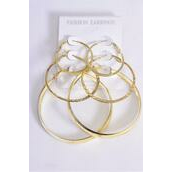Earrings 3 pair Metal Hoop Shape and Size Mix Gold / 36 pair = Dozen