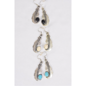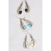 Earrings Metal Antique Feather Symbol Semiprecious Stone / 12 pair Flower = Dozen