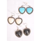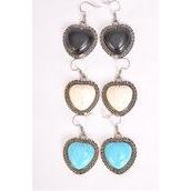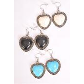 Earrings Metal Antique Heart Semiprecious Stone / 12 pair = Dozen Match 70003