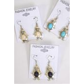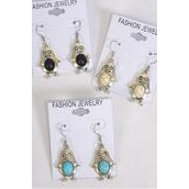 Earrings Metal Antique Penguin Real Semiprecious Stone / 12 pair = Dozen