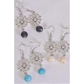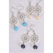 Earrings Metal Daisy Flower Semiprecious Stone / 12 pair = Dozen