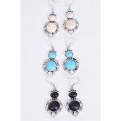 Earrings Metal Antique Dangle Semiprecious Stone / 12 pair = Dozen