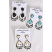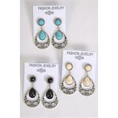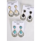 Earrings Metal Antique Teardrop Semiprecious Stone / 12 pair = Dozen