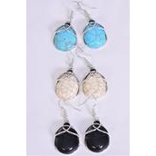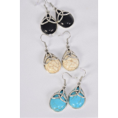 Fish Hook , Size - 1.25" x 1" Wide , 4 Black , 4 Ivory , 4 Turquoise Color Asst , Earring Card & OPP Bag & UPC Code