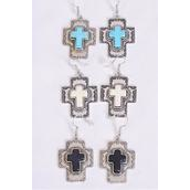 Earrings Metal Antique Cross Semiprecious Stone / 12 pair = Dozen match 70155