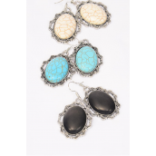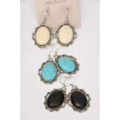 Earrings Metal Antique Oval Dangle Semiprecious Stone / 12 pair = Dozen