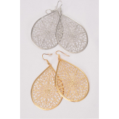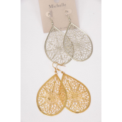 Earrings Laser Cut Stainless Steel Teardrop Gold Silver Mix / 12 pair = Dozen