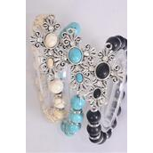 Bracelet Sideways Cross Stretch 10 mm Semiprecious Stone / 12 pcs = Dozen match 02586 , 75025