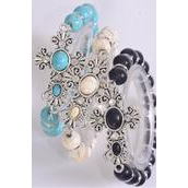 Stretch , Cross - 1.75" x 1.25" Wide , 4 Black , 4 Ivory , 4 Turquoise Asst , Hang Tag & OPP Bag & UPC Code