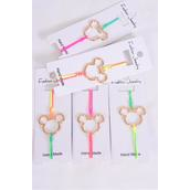 Bracelet Mouse Ear Gold Tiedye Strings Multi / 12 pcs = Dozen