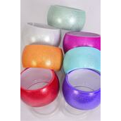 Bracelet Bangle Acrylic Wide Hinge Metallic Multi / 12 pcs = Dozen