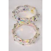 Bracelet Bangle Acrylic Woven Iridescent Silver Studded / 12 pcs = Dozen