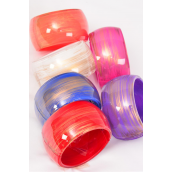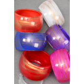 Bracelet Bangle Acrylic Wide Hinge Brush Stroked Multi / 12 pcs = Dozen