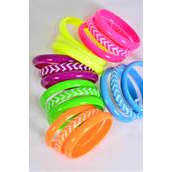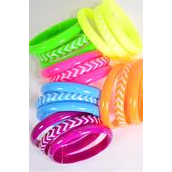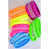 Bracelet Bangle 36 pcs Acrylic Chevron Pattern Caribbean Neon / 12 card = Dozen