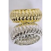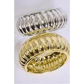 Bracelet Bangle Hinge Acrylic Ridged Gold Silver Mix / 12 pcs = Dozen