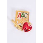 Brooch Enamel Apple Rhinestones ABC 123 Note Pad / 12 pcs = Dozen