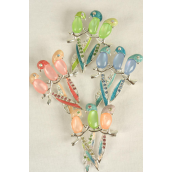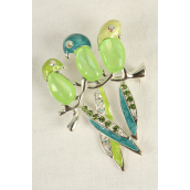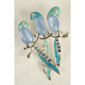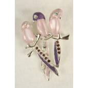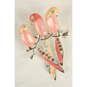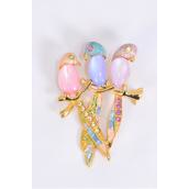 Brooch 3 Birds Parrot Cat eye w Rhinestones / 12 pcs = Dozen