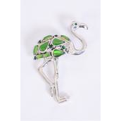 Brooch Flamingo Cateye w Rhinestone / 12 pcs = Dozen