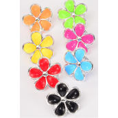 Rings Poly Large Flower Silver Trim Multi / 12 pcs = Dozen
