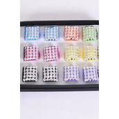 Rings Acrylic Square Silver Studded Multi / 12 pcs = Dozen