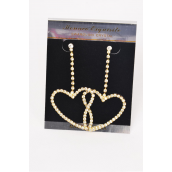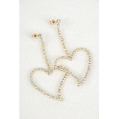 Earrings Clear Rhinestone Hearts / 12 Pair = Dozen