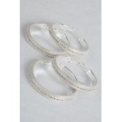 Earrings Hoop Mesh Rhinestone Post / 12 pair = Dozen Post , Size - 1.75" Wide , Earring Card & OPP Bag & UPC Code , Choose Gold Or Silver Finish