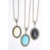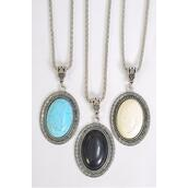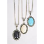 Necklace Silver Chain Metal Antique Oval Semiprecious Stone / 12 pcs = Dozen