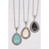 Pendant - 1.75" x 1.25" Wide , Chain-18" Extension Chain , 4 Ivory , 4 Black , 4 Turquoise Asst , Hang Tag & OPP Bag & UPC Code