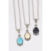Necklace Silver Chain Antique Oval Semiprecious Stone / 12 pcs = Dozen match 01098