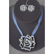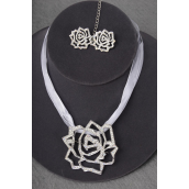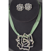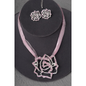 Necklace Sets Large Rose Pendant w Rhinestones Asst / 12 Sets = Dozen