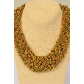 Necklace Woven Indian Beads Matte Gold / PC