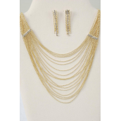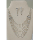Necklace Sets Strand Mesh Silver With Rhinestones / 12 Sets = Dozen