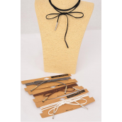 Necklace Faux Cord String Wrap Bolo Tie Choker Metal Accent On Bottom / 12 PCS = Dozen