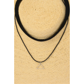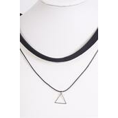 Necklace Choker 2 Strand Black Faux Suede Triangle Charm / 12 pcs = Dozen