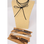 Necklace Faux Suede Cord String Wrap Bolo Tie Choker Heart Pendant Multi / 12 pcs = Dozen