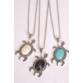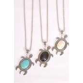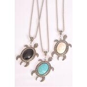 Necklace Silver Chain Turtle Semiprecious Stone / 12 pcs = Dozen match 02666