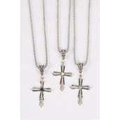 Necklace Silver Chain Metal Cross Antique Semiprecious Stone / 12 pcs = Dozen match 27120 02677