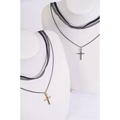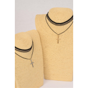 Necklace Choker 2 Strand Lace Chain Cross Mix / 12 pcs = Dozen