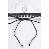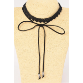 Necklace Choker 2 Strand Lace Stretch & Faux Suede Cord String Wrap Bolo Tie / 12 pcs = Dozen