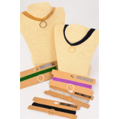 Necklace Choker Velvet Gold Circle Pendant / 12 pcs = Dozen