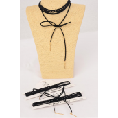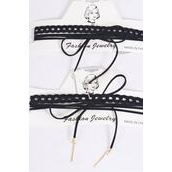 Necklace Choker 24 pcs Lace Stretch & Faux Suede Cord String Wrap Bolo Tie / 24 pcs = Dozen