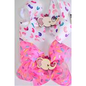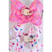 Hair Bow Jelly Bean Sprinkles Pattern Mix center w Elephant Charm Grosgrain Bow-tie / 12 pcs Bow = Dozen