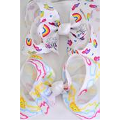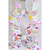 Hair Bow Jumbo Rainbow Happy Cloud Sun Pattern Mix Grosgrain Bow-tie / 12 pcs Bow = Dozen