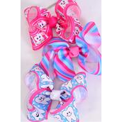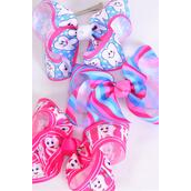 Hair Bow Jumbo Happy Tooth Strip Pattern Mix Grosgrain Bow-tie / 12 pcs Bow = Dozen
