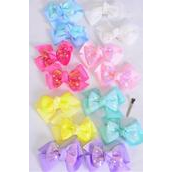 Hair Bow 24 pcs Double Layered Sequin Iridescent Pastel Grosgrain Bow-tie / 24 pcs Bow = Dozen