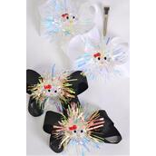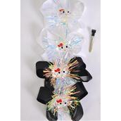 Hair Bow 24 pcs Center Iridescent w Kitty Charm Grosgrain Bow-tie Black and White Color Mix / 12 pair Bow = Dozen
