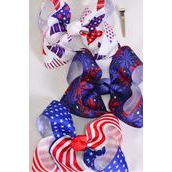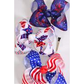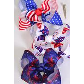 Hair Bow Jumbo Patriotic Stars Stripes Firework Mix Grosgrain Bow-tie / 12 pcs Bow = Dozen