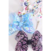 Hair Bow Jumbo Butterfly Flower Power Peace Sign Pattern Mix Grosgrain Bow-tie / 12 pcs = Dozen